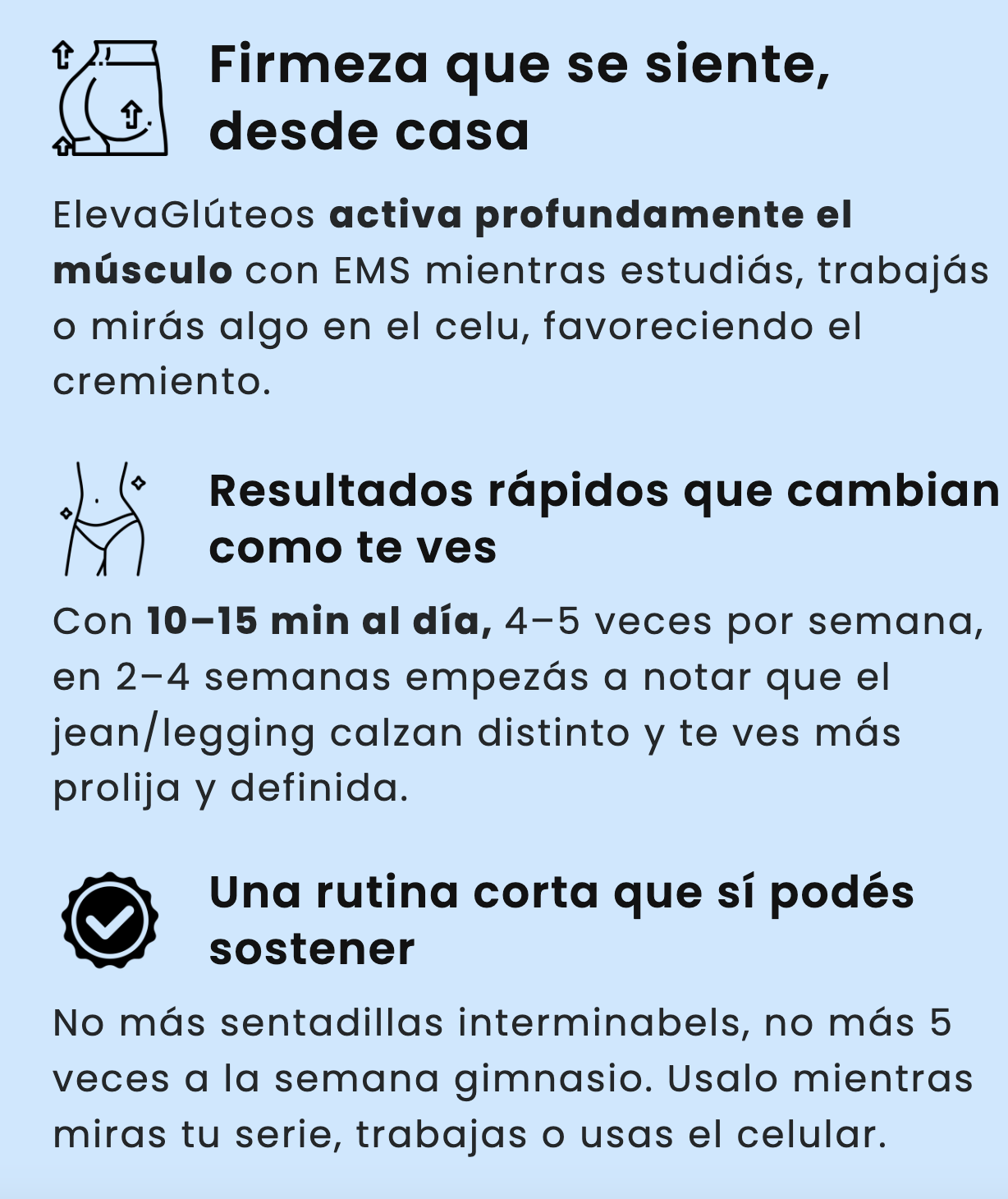 Para las que buscan más firmeza y sostén en glúteos con 10–15 min/día.
